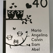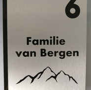 Diverse naamborden. De prijs is afhankelijk van het soort bord, niet van de belettering. Elke belettering is mogelijk, ook eigen ontwerp.