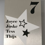Bord A: RVS look dibond. 28,95 euro. Met nummerruit: 32.95 euro.